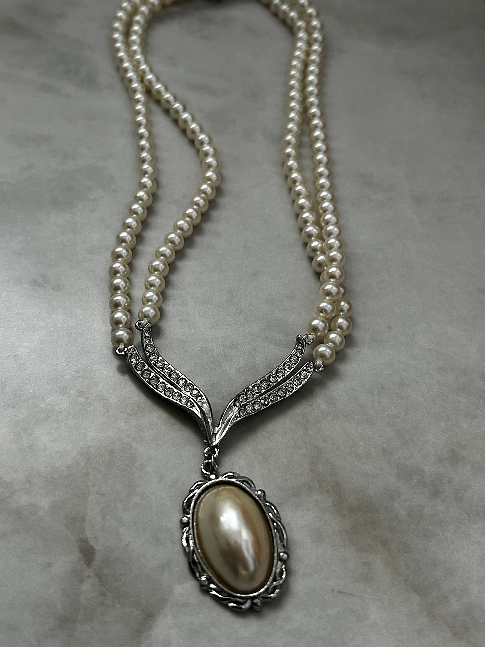 שרשרת פנינה אובלית מוכסף וינטג׳