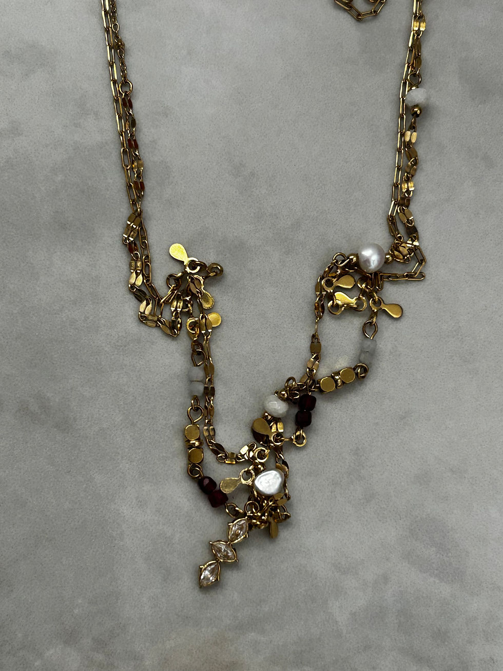 שרשרת כפולה עדינה רובי ופנינים ס.סטיל