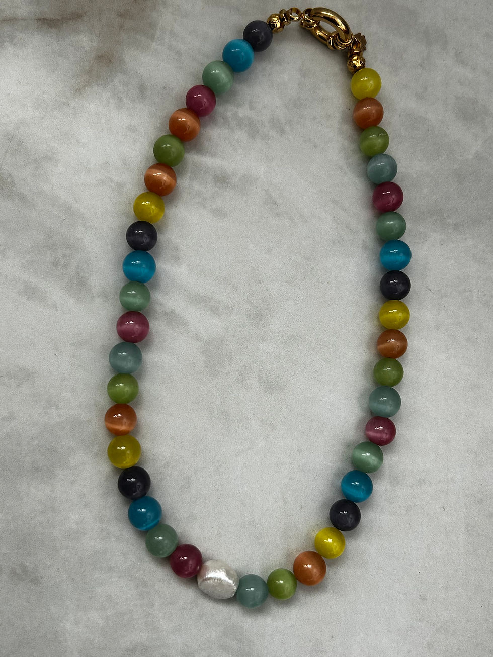 שרשרת פסטל עין החתול ופנינה בס.סטיל
